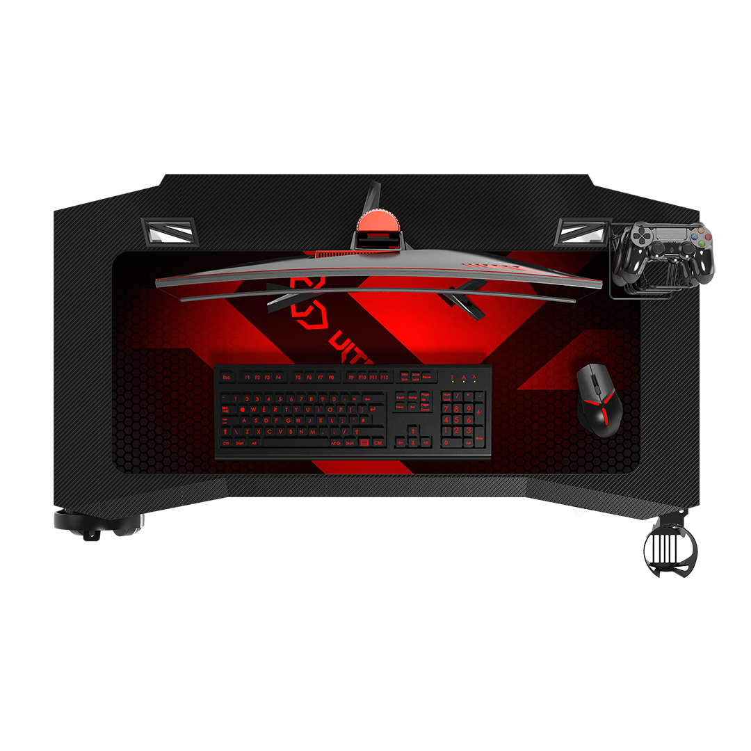 Kompaktowy pulpit usadowiony jest na skrzyżowanych nogach, które zapewniają bardzo dużą stabilność. Komfort gracza był priorytetem podczas tworzenia tego modelu, dlatego też to biurko gamingowe zyskało maksymalnie ergonomiczny kształt i rozmiary, ale nie tylko. Przednia krawędź blatu została pochylona dla podwyższenia wygody, szczególnie podczas opierania przedramion.
