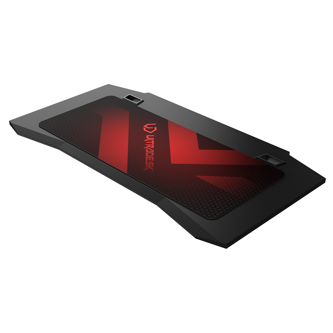 Wraz z biurkiem ACTION do zestawu dodawana jest gruba podkładka pod klawiaturę i mysz w rozmiarze XL. Chyba nikt w dzisiejszych czasach nie wyobraża sobie poważnej rozgrywki bez odpowiedniej powierzchni roboczej. Podkładka w modelu ACTION V2 to potężne narzędzie umożliwiające kontrolę nad myszką na najwyższym poziomie i nieporównywalny do tej pory feeling gry. Jej powierzchnia to aż dwie warstwy o łącznej grubości 3 mm! Spodnia warstwa antypoślizgowa zapewnia fenomenalny komfort.