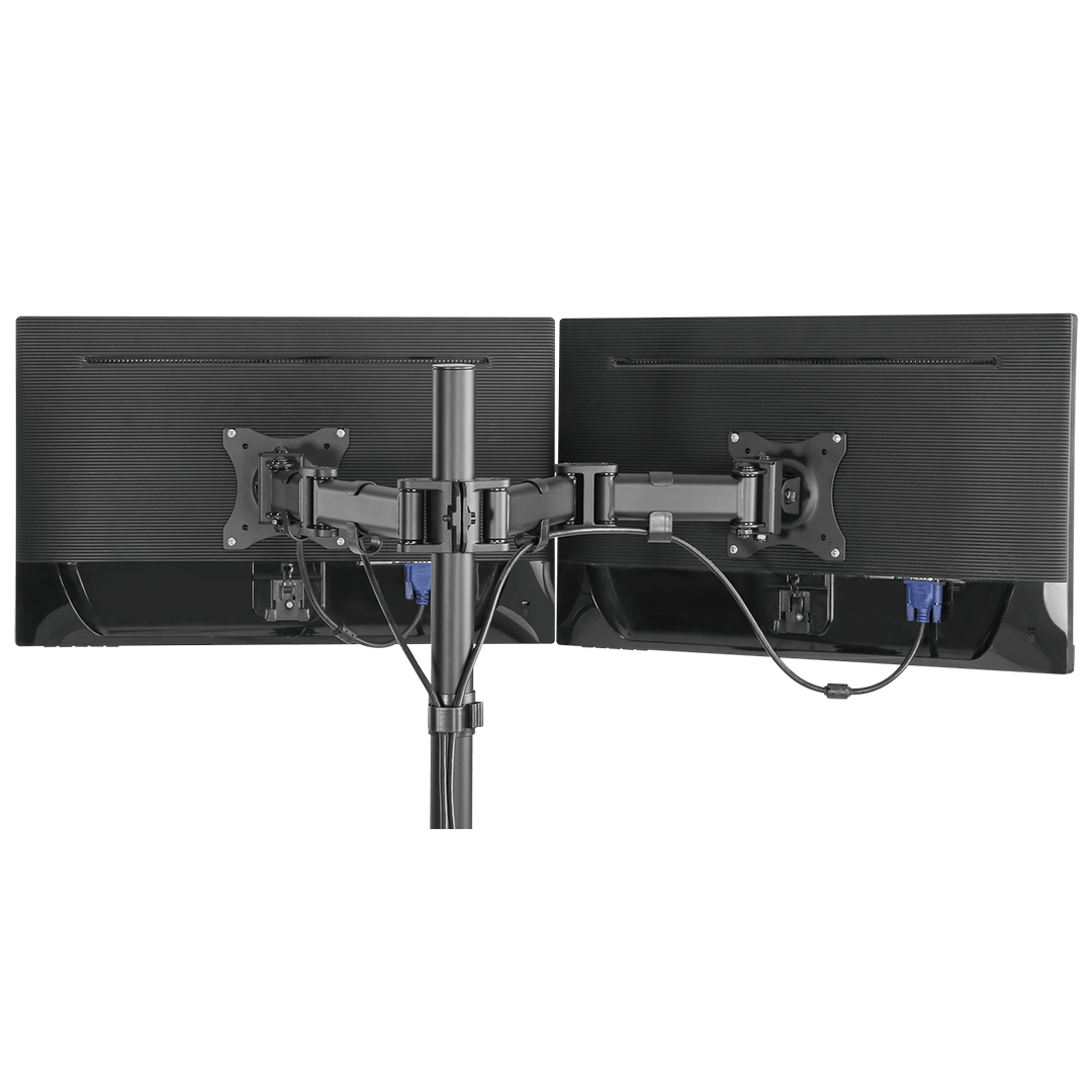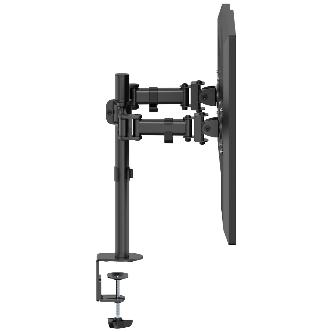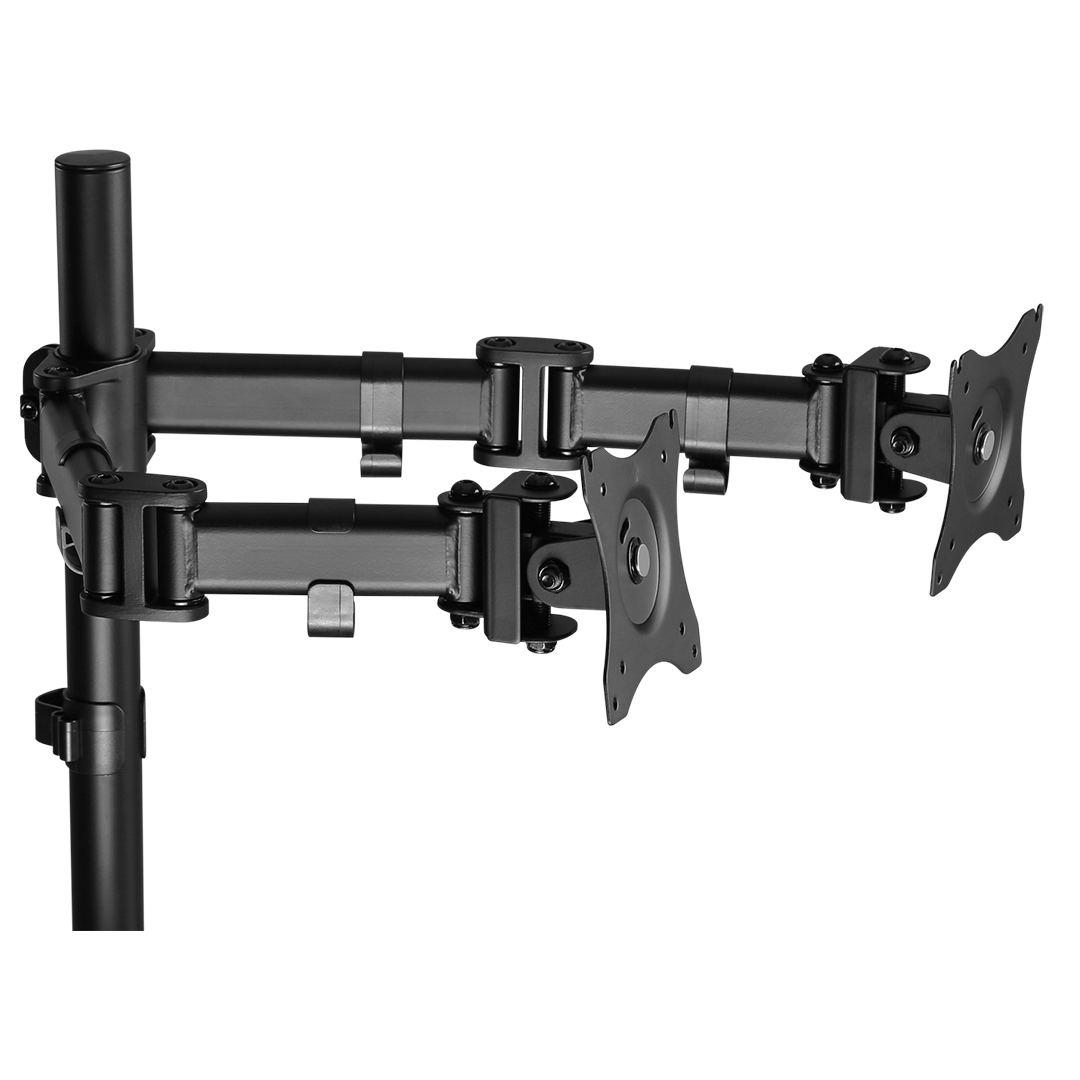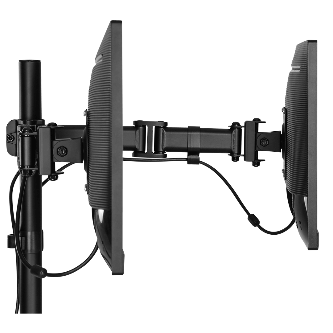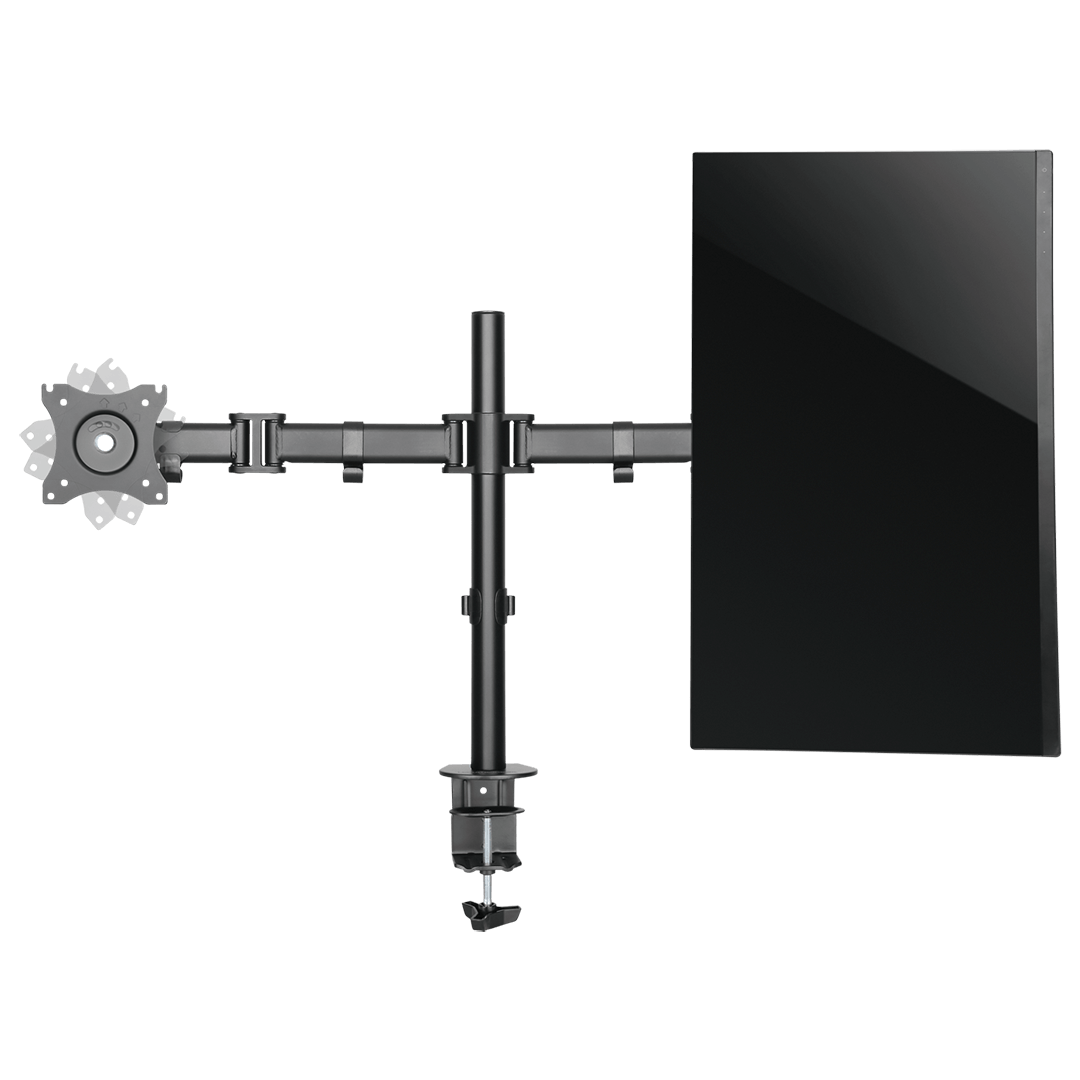 Głównym elementem uchwytu są ramiona obrotowe wykonane ze stali, które pozwalają na przemieszczanie monitorów w przestrzeni o pełne 360 stopni wokół jego własnej osi. Zostały wykonane z trwałego i mocnego stopu metalu, a ich powierzchnia zewnętrzna została zabezpieczona estetyczną powłoką. Zastosowany mechanizm jest bardzo niezawodny i nie wymaga czasochłonnych zabiegów konserwacyjnych, aby utrzymać swoją pełną funkcjonalność.