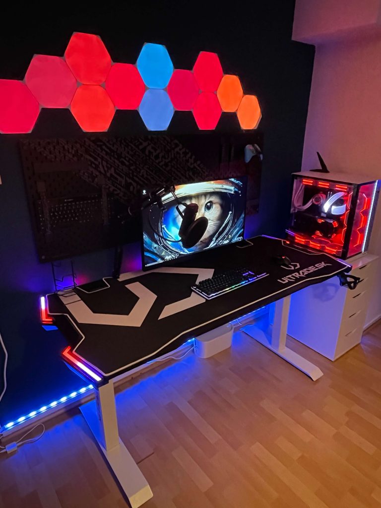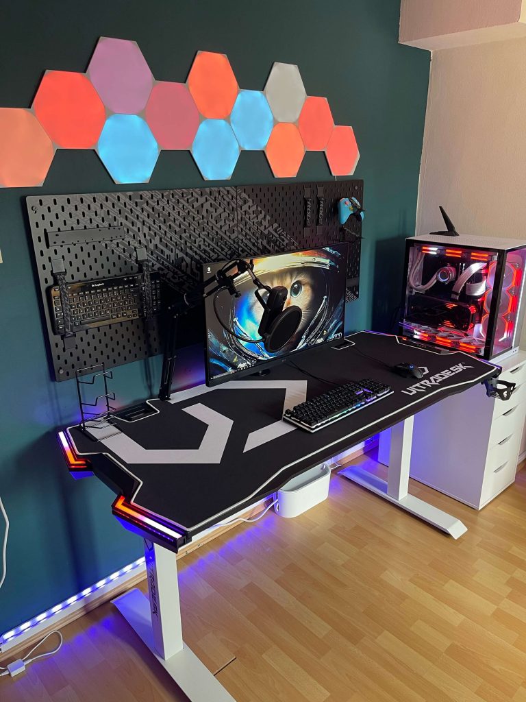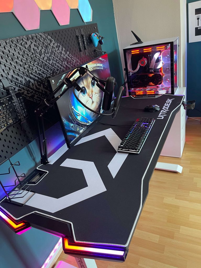 Podkładka XXL, Uchwyt na napoje, Uchwyt na słuchawki, Stojak na pady, Półka na listwy zasilające, 2x Otwór przelotowy