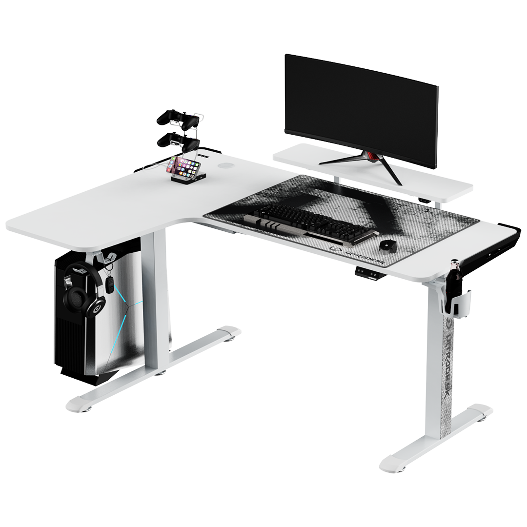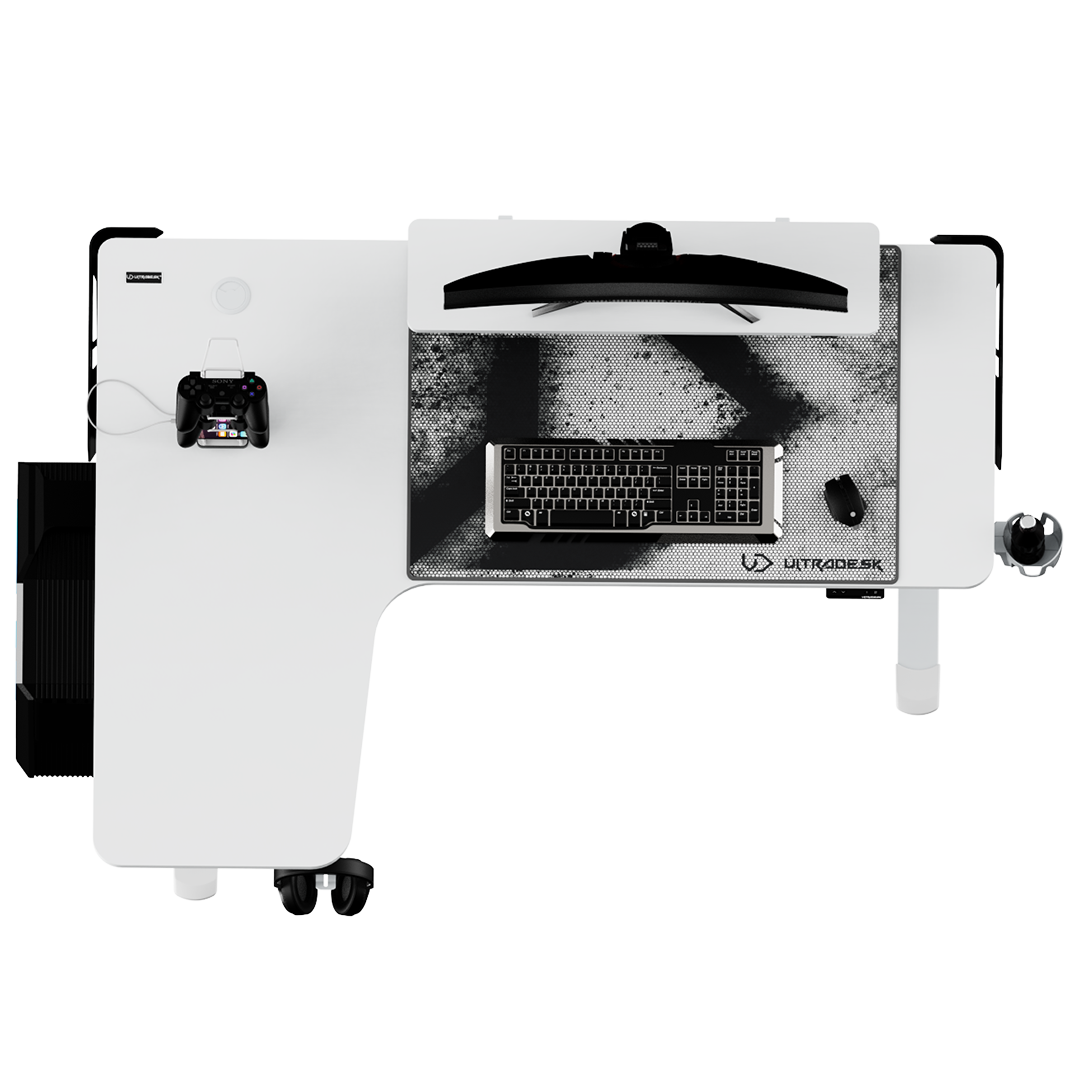 Pierwsze biurko ULTRADESK z narożnym pulpitem. Pozwala ono jeszcze efektywniej zagospodarować przestrzeń dostępną w pomieszczeniu docelowym. Pulpit został wykonany w dużym rozmiarze, aby umożliwić instalację wysokiej klasy zestawu komputerowego z wieloma akcesoriami i urządzeniami peryferyjnymi. Szerokie skrzydło biurka zwiększa komfort pracy i zabawy z komputerem – często służy jako miejsce na drukarkę, skaner, tablet graficzny lub dodatkowego laptopa. WINGER sprawia, że w każdym momencie na wyciągnięcie ręki macie cały swój sprzęt.