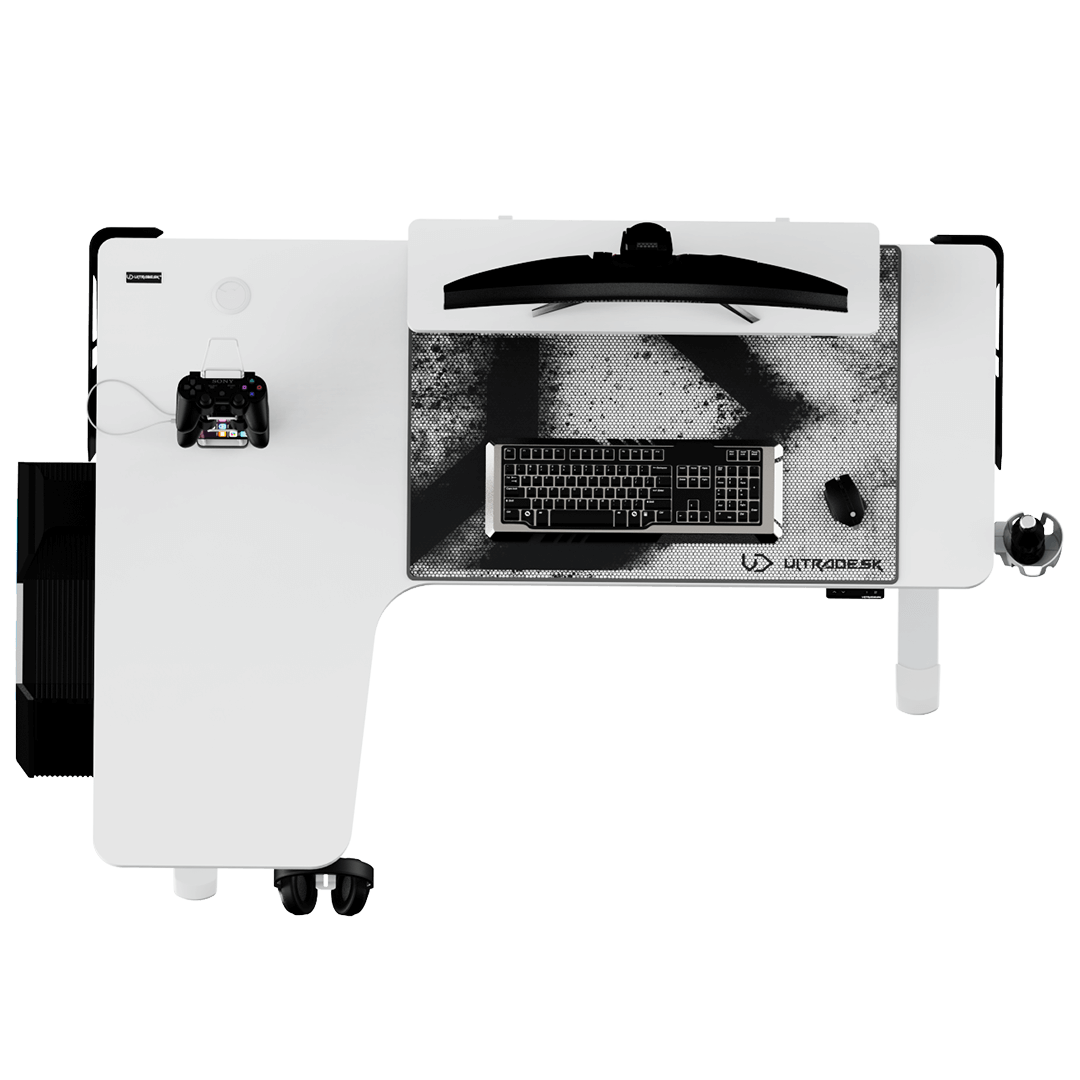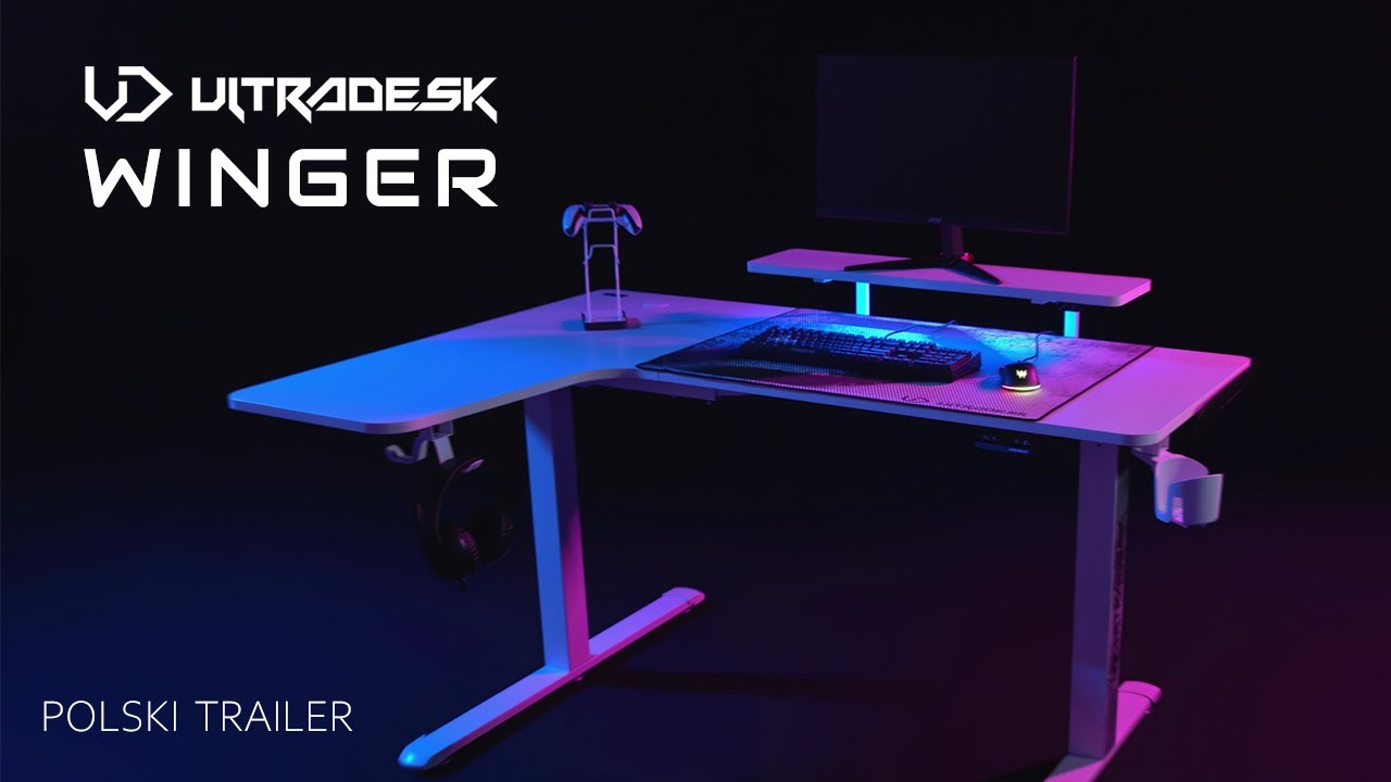 Pierwsze biurko ULTRADESK z narożnym pulpitem. Pozwala ono jeszcze efektywniej zagospodarować przestrzeń dostępną w pomieszczeniu docelowym. Pulpit został wykonany w dużym rozmiarze, aby umożliwić instalację wysokiej klasy zestawu komputerowego z wieloma akcesoriami i urządzeniami peryferyjnymi. Szerokie skrzydło biurka zwiększa komfort pracy i zabawy z komputerem – często służy jako miejsce na drukarkę, skaner, tablet graficzny lub dodatkowego laptopa. WINGER sprawia, że w każdym momencie na wyciągnięcie ręki macie cały swój sprzęt.