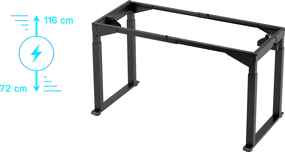 Zaawansowany system płynnej regulacji wysokości pulpitu w zakresie od 72 do 116 cm, który pozwala korzystać z biurka zarówno w pozycji siedzącej jak i stojącej. Nowoczesne silniki elektryczne oraz łatwy w obsłudze panel sterowania. Rama unosi się lub obniża z bezpieczną prędkością. System elektrycznej regulacji wysokości został zbudowany wyłącznie z komponentów najwyższej jakości, co oznacza, że zapewnia użytkownikowi najwyższy osiągalny poziom niezawodności i wytrzymałości. Dzięki płynnej zmianie wysokości biurko oparte na ramie ULTRADESK UPLIFT FRAME zawsze perfekcyjnie dopasujesz do swoich rozmiarów ciała!