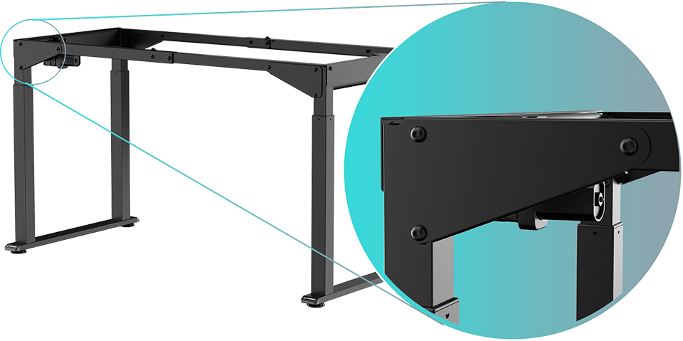 Rama UPLIFT FRAME korzysta z dwóch odrębnych silników elektrycznych zintegrowanych w podporach bocznych, dzięki czemu może zagwarantować wyższą nośność i trwałość. Obie jednostki napędowe zainstalowane w naszej ramie zużywają minimalną ilość energii elektrycznej. Podczas podnoszenia silniki pracują bardzo cicho i unoszą powierzchnie roboczą równomiernie z bezpieczną prędkością. Z odległości kilku metrów nie są one w ogóle słyszalne, co gwarantuje spokój pozostałym domownikom.