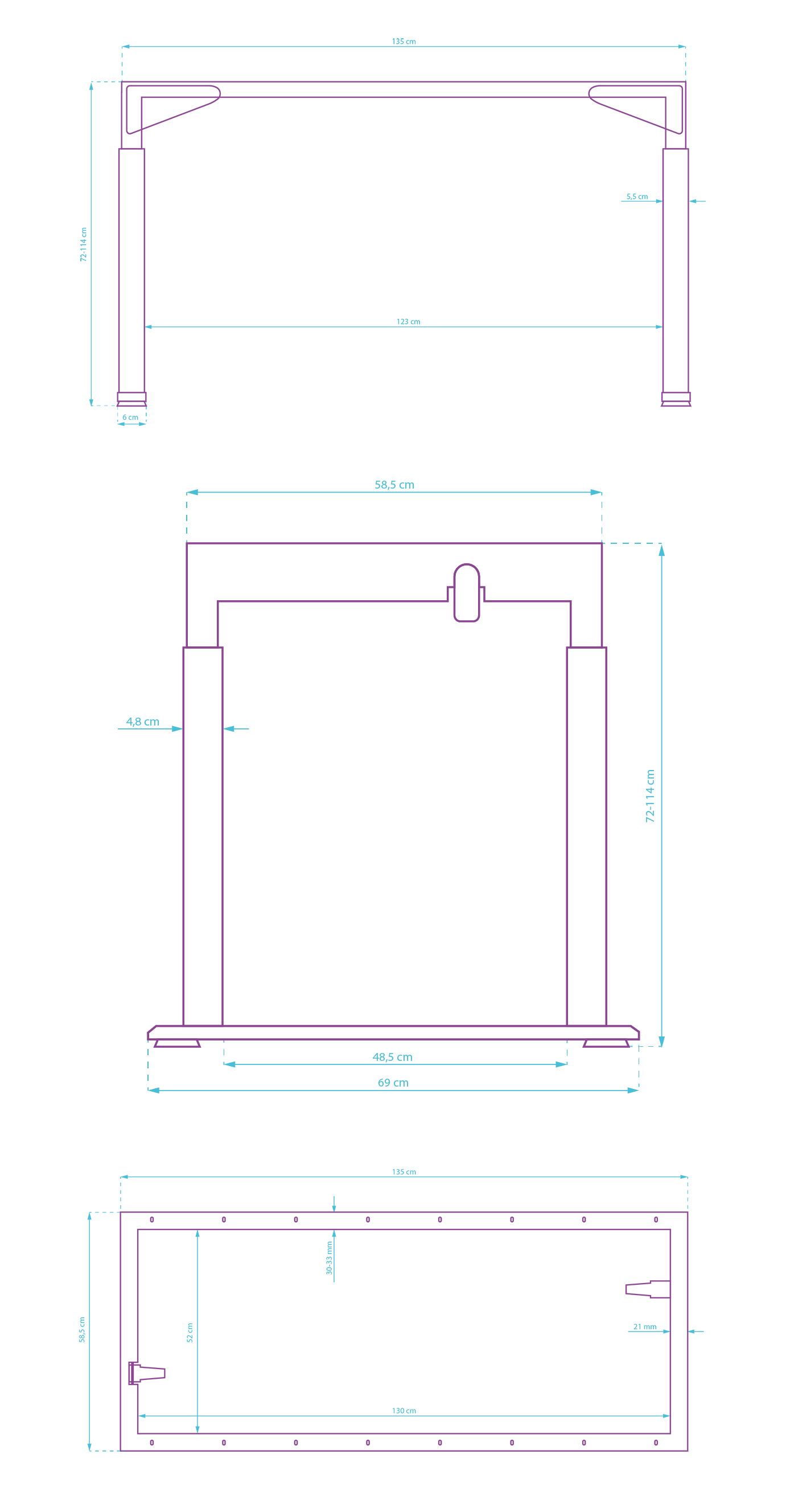 Dzięki zastosowaniu podwójnych podpór bocznych udało się znacznie podwyższyć nośność oraz zapewnić odpowiednie usztywnienie ramy. Obie podpory zostały specjalnie pogrubione i trwale połączone ze sobą. W celach estetycznych ich krawędzie zostały nieco zaokrąglone. Nasze podwójne podpory boczne całkowicie eliminują efekt kołysania.