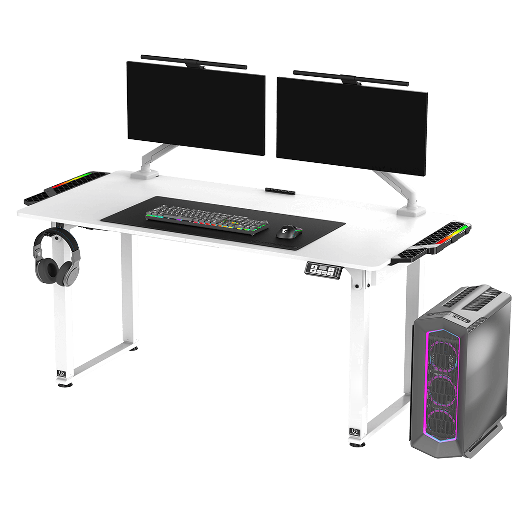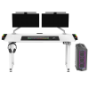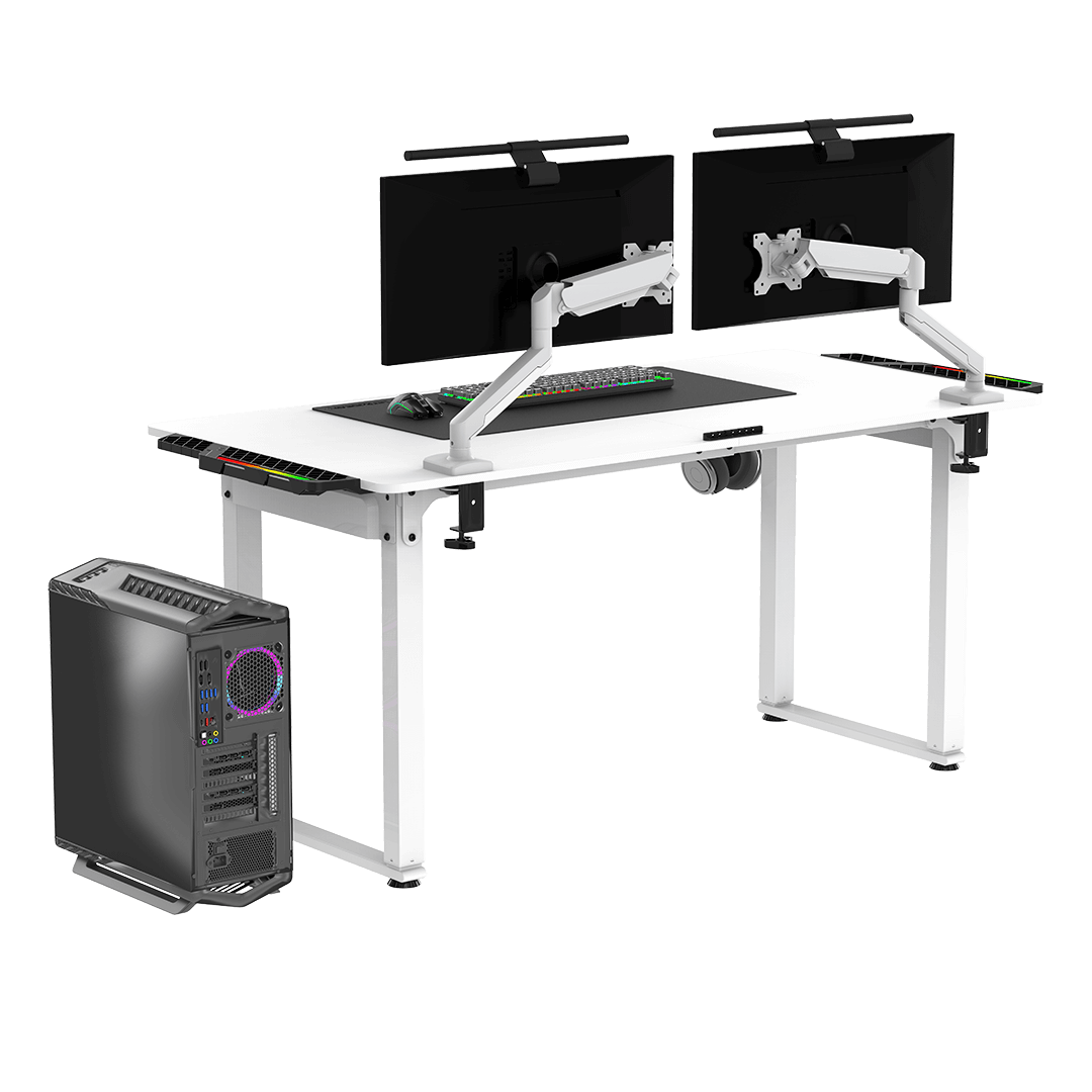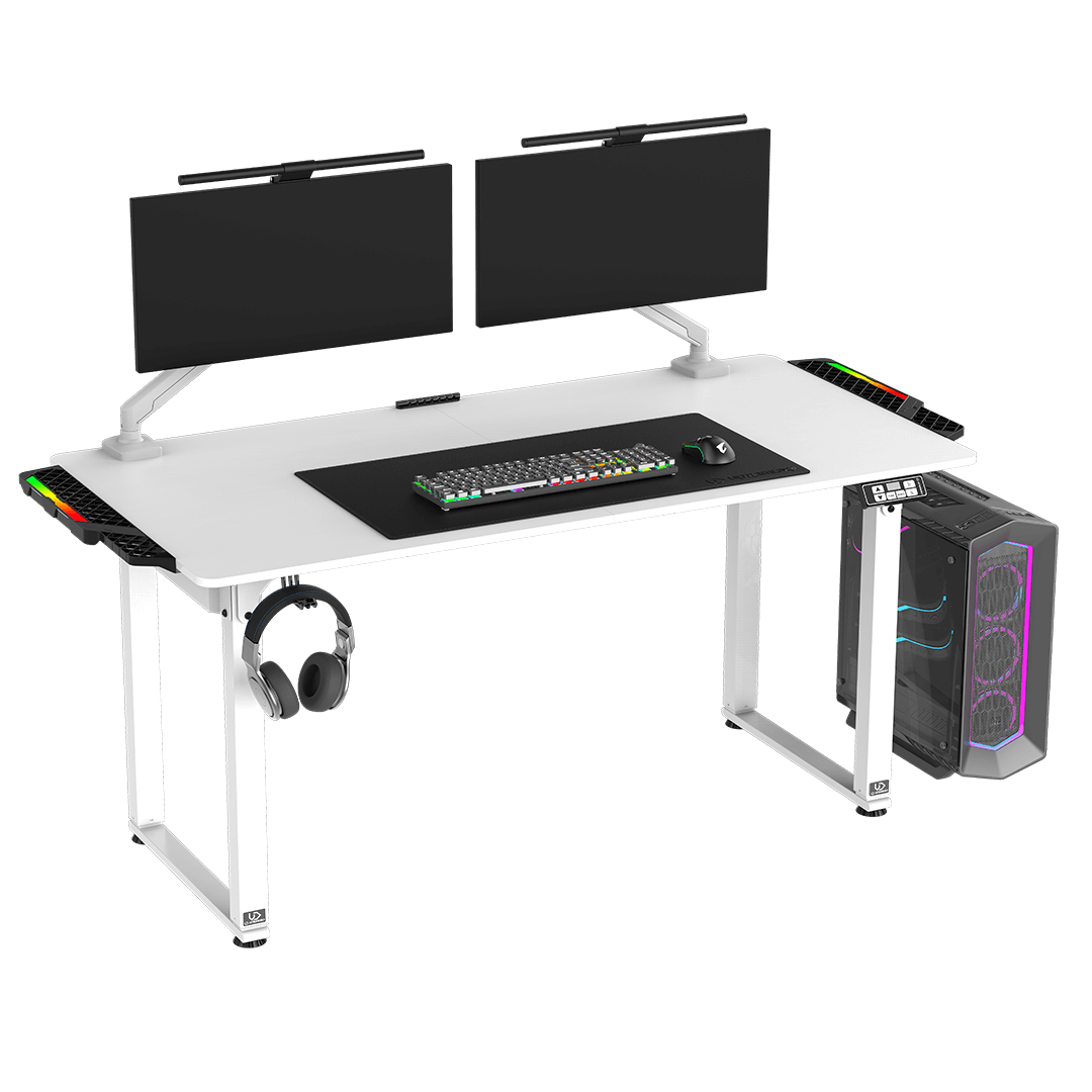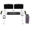 Rozszerzona wersja biurka UPLIFT, która dodatkowo oferuje po bokach pulpitu bardzo obszerne panele z nietuzinkowym podświetleniem LED RGB. Wielokolorowe podświetlenie emitowane jest na dużych powierzchniach, co powoduje, że naprawdę efektywnie rozświetla stanowisko do gier. Obudowa paneli otrzymała nowoczesny kształt i w pełni integruje się z pulpitem. UPLIFT LED RGB to dużych rozmiarów biurko z ogromnym potencjałem wizualnym.