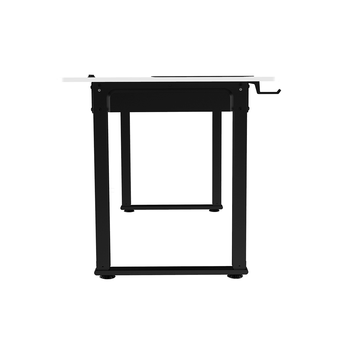 Nowa konstrukcja biurka pozwala graczom swobodnie rozłożyć nogi pod blatem. Nie ma obawy przed bolesnymi konfrontacjami stóp z twardym metalem, co wpływa na podwyższony komfort podczas długich sesji grania. Brak dolnej belki poprzecznej umożliwia również wygodne korzystanie z wysokiej obudowy komputera. Można swobodnie umieścić jednostkę centralną bez ograniczeń wynikających z tradycyjnej konstrukcji biurka. Rama bez dolnego wspornika poprzecznego prezentuje się estetycznie i nowocześnie.